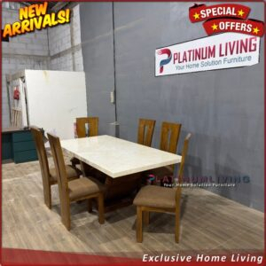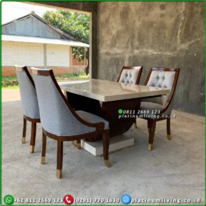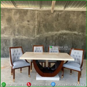 • Meja Makan Marmer Rangka Jati Dan Stainless